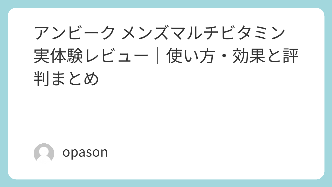 運動後の回復も早く、以前は筋肉痛に悩まされていたのが、アンビーク メンズマルチビタミンを摂取するようになってから、体の疲れが翌日まで残りにくくなりました。1ヶ月続けてみた結果、体のエネルギー感が増し、仕事の効率も上がったように感じます。