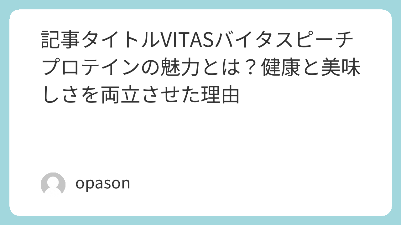 記事タイトルVITASバイタスピーチプロテインの魅力とは?健康と美味しさを両立させた理由