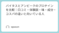 味に関しても、できるだけ甘さを避けたい人は、フレーバーによって印象が変わる可能性があります。口コミ評価が高いからといって、自分にとって必ず最適とは限らないため、普段の好みに近い味を選ぶ視点は大切です。