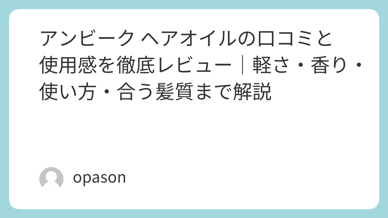 アンビーク ヘアオイルは、使った瞬間に劇的な変化を求める人よりも、「ちょうどいいまとまり」「自然なツヤ」「やりすぎない清潔感」を求める人に合いやすいヘアオイルです。