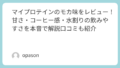 この味は、牛乳よりもまず水で試したくなるフレーバーです。実際に水で割ってみると、重さが出にくく、後味も比較的すっきりしていました。濃厚なデザート感を期待すると違いますが、トレーニング後や朝の一杯としてはかなり飲みやすい部類です。