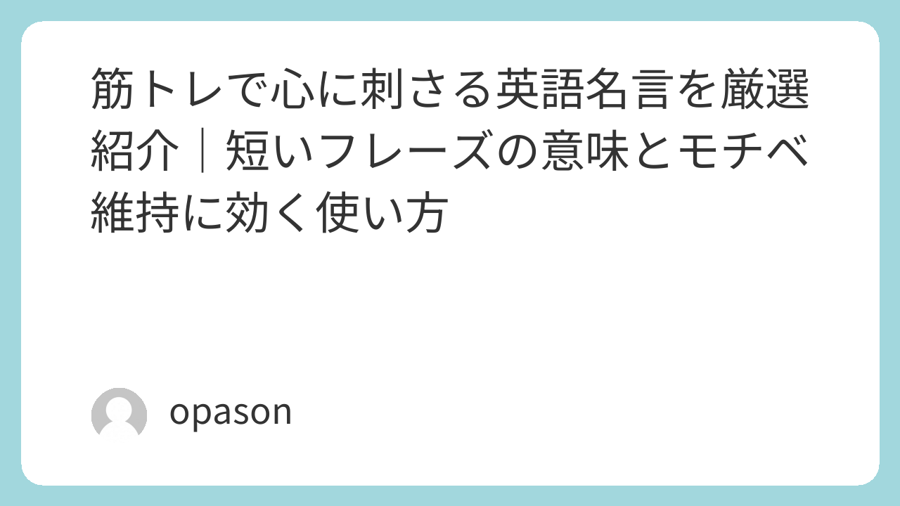 筋トレは、知識だけでは続きません。フォーム、食事、休養、メニュー管理。どれも大切ですが、続けるうえで最後にものを言うのは、その日に動けるかどうかです。英語名言は魔法ではありませんが、気持ちが沈んだ日に自分を立て直す、小さくて頼れるスイッチにはなってくれます。