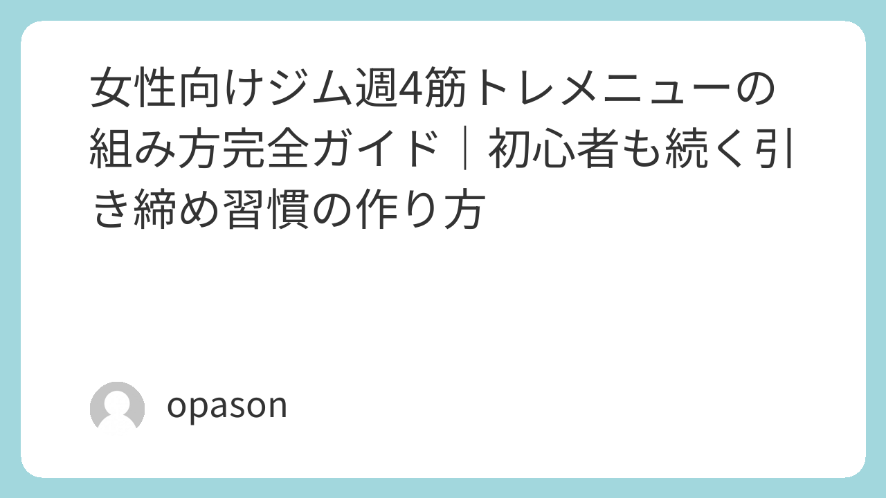 この記事では、女性向けに無理なく続けやすいジム週4筋トレメニューを、初心者にもわかりやすく紹介していきます。引き締めたい、ヒップラインを整えたい、姿勢をよく見せたい、運動習慣を作りたい。そんな思いを持つ人が、現実的に続けられる形でまとめました。