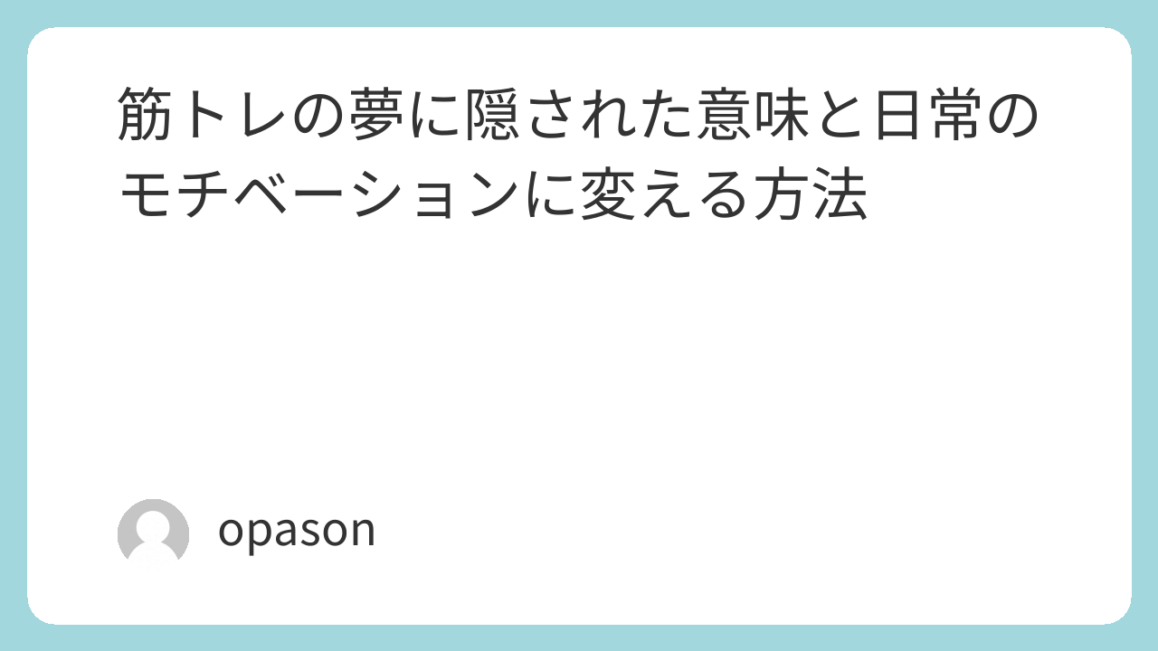 • 「誰かが黙々と筋トレしている夢」は、あなたが周囲の努力を見て焦る気持ちを抱いているサインとも読めます。 (やおよろずの雑記帳)
