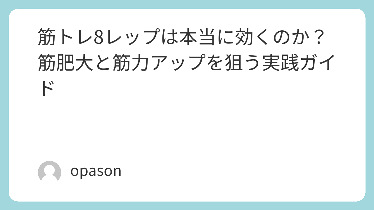 8レップという回数は、筋肥大と筋力向上の両方を狙えるちょうどよいレンジであり、多くのトレーニーが成果を出している回数です。正しい重量設定、適切な休憩、そしてフォームを意識することが成果につながります。私も8レップベースのトレーニングを取り入れてから、特にパンプ感や扱える重量の伸び、筋肉の変化を実感できるようになりました。焦らず継続して、自分に合った強度で続けていきましょう。(PMC)