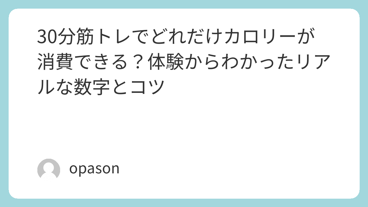 筋力トレーニングを30分やったとき、どれくらいカロリーを消費するのかは気になるところですよね。健康目的でもダイエット目的でも、数字の目安を知っておくとモチベーションになります。実際にいくつかのトレーニングを試してみた僕の体験も交えて、30分の筋トレで消費できるカロリーについて詳しく解説します。