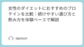 特に、甘くて飲みやすいタイプほど、味づくりのために成分バランスが変わることがあります。もちろん味は大切ですが、ダイエット目的なら“飲みやすさだけ”で選ばないことが大事です。