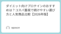 迷ったら、まずはホエイタイプで、味は無難なもの、容量は大きすぎないものを選ぶ。この考え方なら、大きく外しにくいです。コスパ重視で始めたい初心者ほど、値段と同じくらい「飲みやすさ」に目を向けて選んでみてください。そうすると、最初の一袋の満足度はかなり変わってきます。