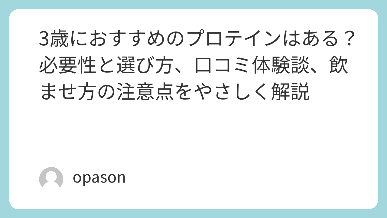 だからこそ、3歳の子にプロテインを選ぶなら、“栄養成分だけで決める”のではなく、“この子が無理なく飲めそうか”をいちばんの基準にしてみてください。食事が基本、そのうえで必要なときだけそっと補う。そんな距離感で取り入れるのが、3歳にはちょうどいい選び方です。