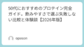 50代になると、買い物で“失敗したくない気持ち”が強くなるものです。だからこそ、プロテインもスペック勝負ではなく、自分の生活に合う一本を探す視点が欠かせません。