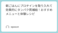 朝の食事にプロテインを加えることで、1日のたんぱく質摂取量を確保できます。特にトレーニング前の朝食で摂取することで、エネルギーが持続し、運動のパフォーマンスが向上します。