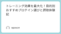 - プロテインの種類に気をつける:プロテインにもさまざまな種類がありますが、自分の目的に合ったものを選ぶことが大切です。筋肉増強を目的にしているなら、ホエイプロテインを選ぶ方が効果的です。