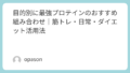 自分の目的(筋トレ、ダイエット、美容など)に合わせて、プロテインの種類を選びましょう。ホエイプロテインは筋肉増強に最適で、ソイプロテインはダイエットに適しています。カゼインプロテインは、寝る前の栄養補給にぴったりです。