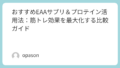 - 運動後: 筋肉の修復を促進するため、ホエイプロテインがおすすめです。