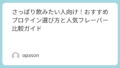 プロテイン選びで最も大切なのは、味と溶けやすさです。私も最初は「粉っぽさ」が気になりましたが、溶けやすいプロテインを選ぶことで、飲みやすさが格段に向上しました。小容量で試してみることを強くおすすめします。