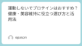 ダイエットを意識している方には、吸収がゆっくりと進むソイプロテインが向いています。ソイプロテインは満腹感を得やすいため、食事の間の間食代わりにも便利です。私は以前ダイエットをしていた際にSAVAS ソイプロテインを使用しましたが、1食当たりのタンパク質量が適切で、飲みやすくて続けやすいと感じました。