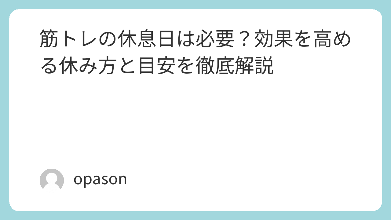 筋トレの最初の壁は、強度ではなく習慣化です。その意味でも、休息日は初心者の味方です。