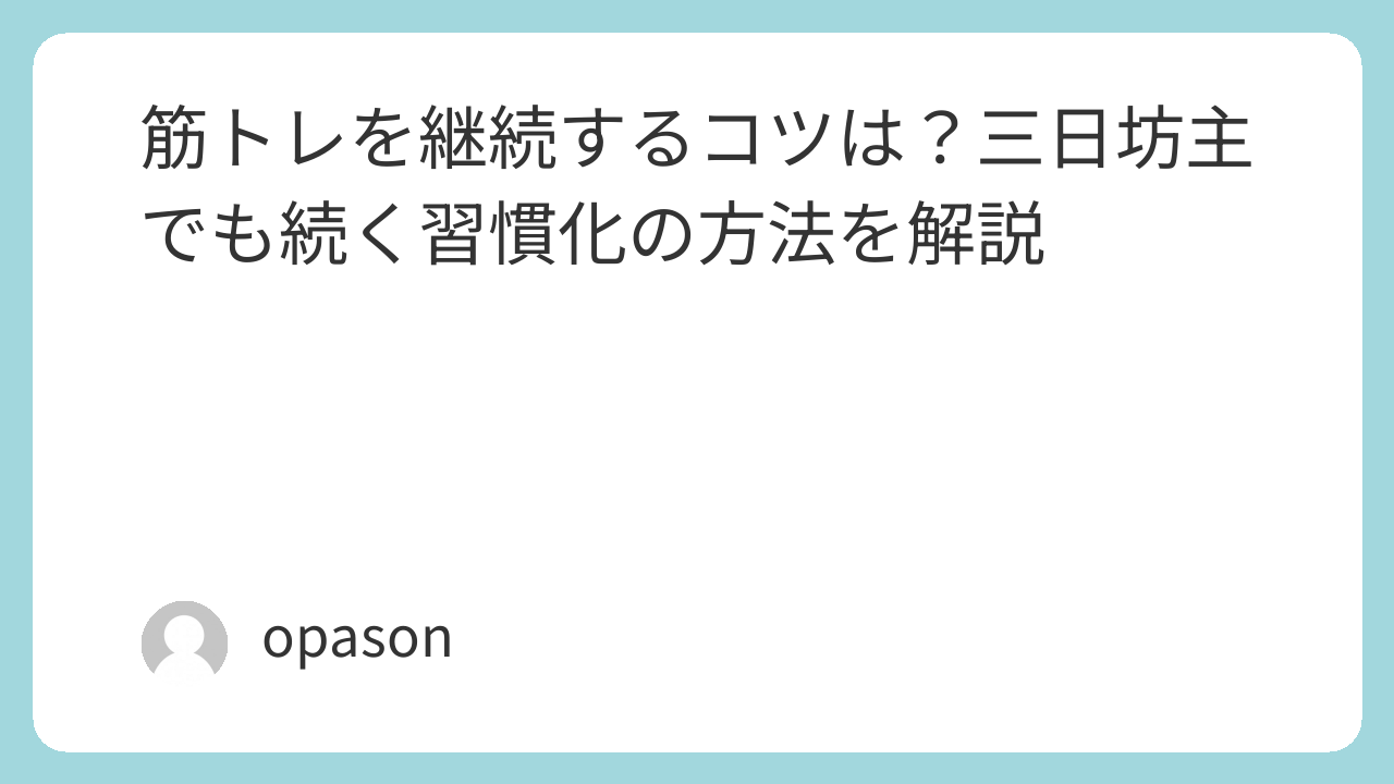 筋トレを継続するコツは、特別な才能でも、燃え続けるモチベーションでもありません。続く形に整えることです。