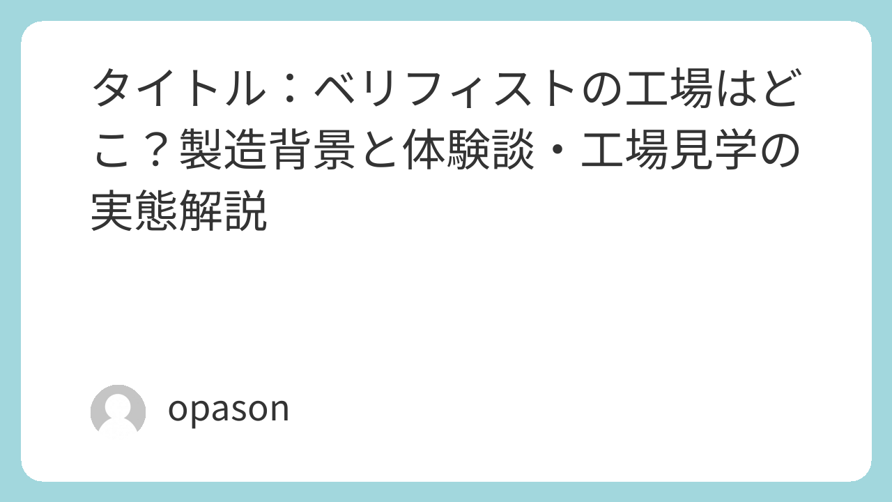 タイトル:ベリフィストの工場はどこ?製造背景と体験談・工場見学の実態解説