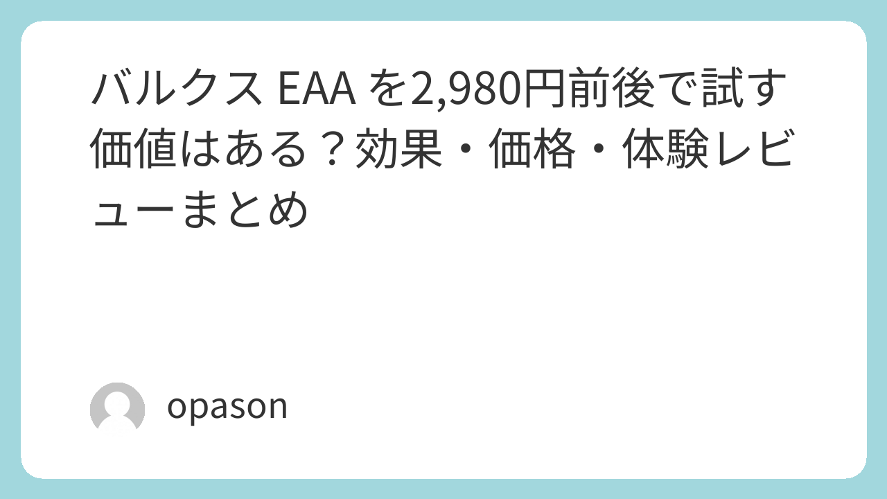 2,980円でバルクス EAAを試すことができる機会は非常にお得だと感じました。普段の価格帯であれば少し高いと感じるかもしれませんが、セールや特典を利用すればコストパフォーマンスが非常に良いです。