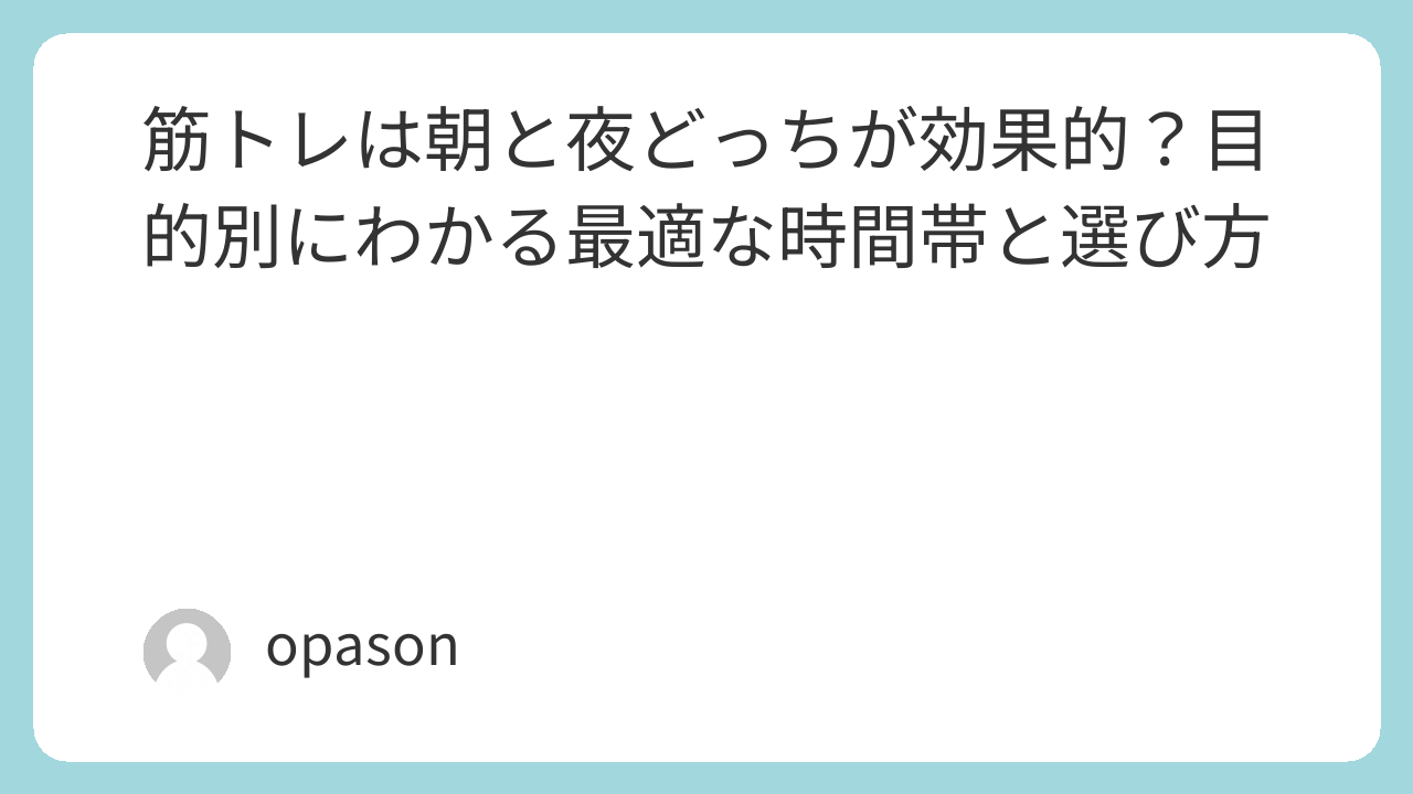 筋トレは朝と夜どっちがいいか。この問いに対して、いちばん現実的な答えは、続けられるほうが正解、です。
