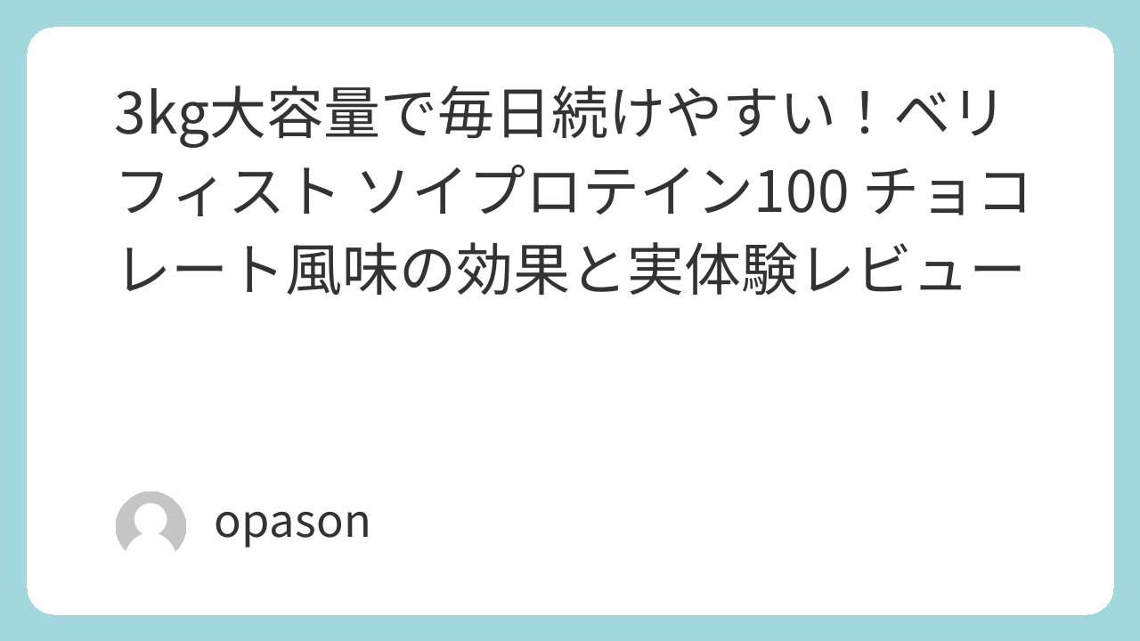「ベリフィスト ソイプロテイン100 チョコレート風味」は、3kgという大容量が魅力のコストパフォーマンス抜群のソイプロテインです。飲みやすいチョコレート風味で、毎日続けやすく、腹持ちも良いため、筋トレ後やダイエット中の栄養補給に最適です。個人的にも、毎朝飲んでいる習慣が続いており、非常に満足しています。
