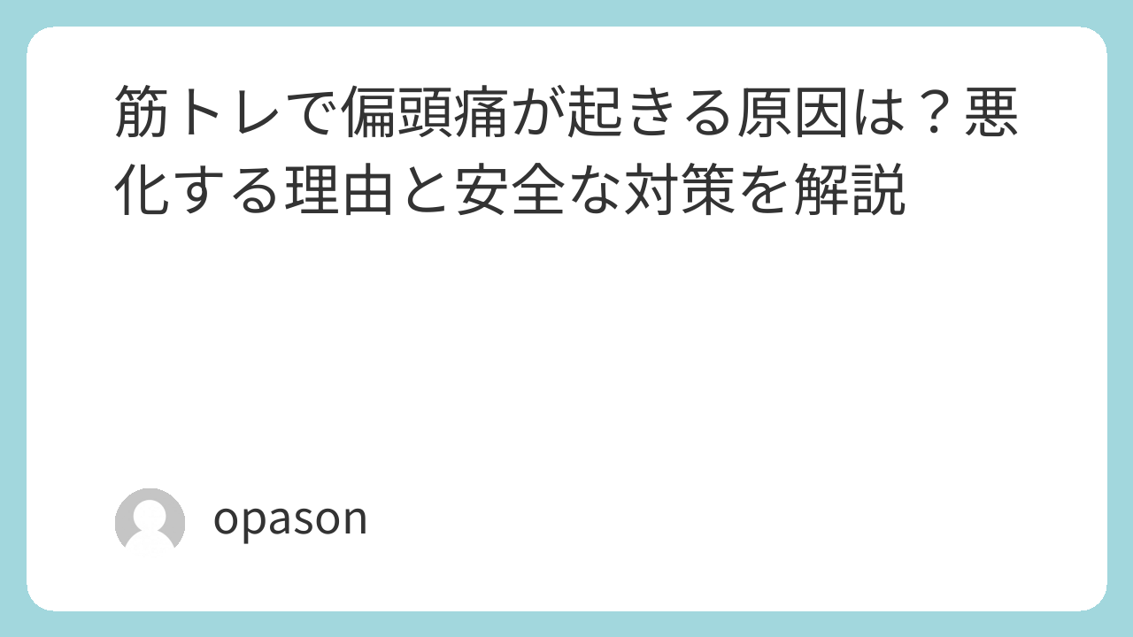 「トレーニングを頑張った日に限って頭がズキズキする」「肩や背中の日だけ頭痛が出やすい」「いつもの片頭痛とは少し違う気もする」。筋トレを続けていると、こんな悩みにぶつかる人は少なくありません。