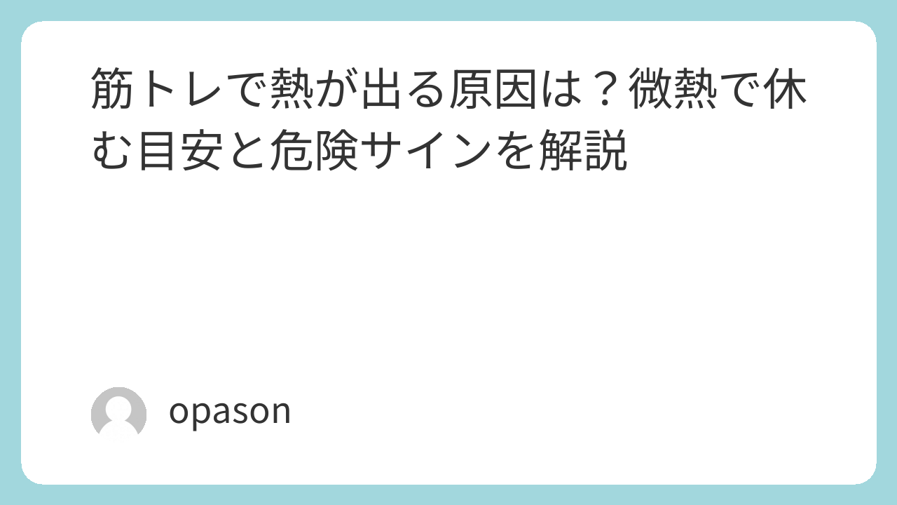 この記事では、筋トレで熱が出るときに考えられる原因、様子見しやすいケース、注意したいケース、休む目安、そして再発を防ぐコツまで、体験を交えながらわかりやすく整理していきます。