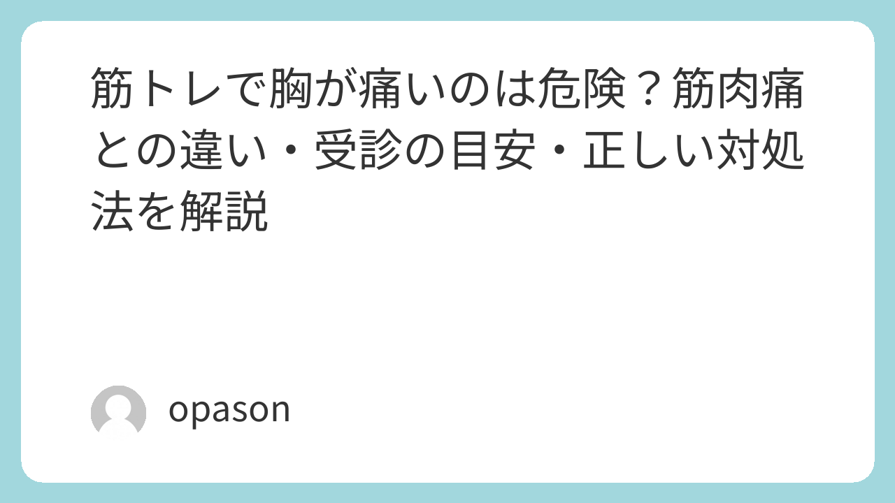 筋トレ後に胸が痛いとき、多くは大胸筋まわりの筋肉痛や負荷による張りですが、すべてを「効いている証拠」と決めつけるのは危険です。翌日から出る鈍い張りや、押すとわかるような広い痛みは筋肉痛らしい一方で、トレーニング中の鋭い痛み、片側だけの強い違和感、深呼吸で響く痛みなどは無理をしないほうが安心です。