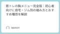 初心者のうちは、難しいテクニックを詰め込むより、続けやすいメニューを反復するほうが結果につながりやすいです。胸トレで迷ったら、まずは週2回の構成から始めるのが現実的です。
