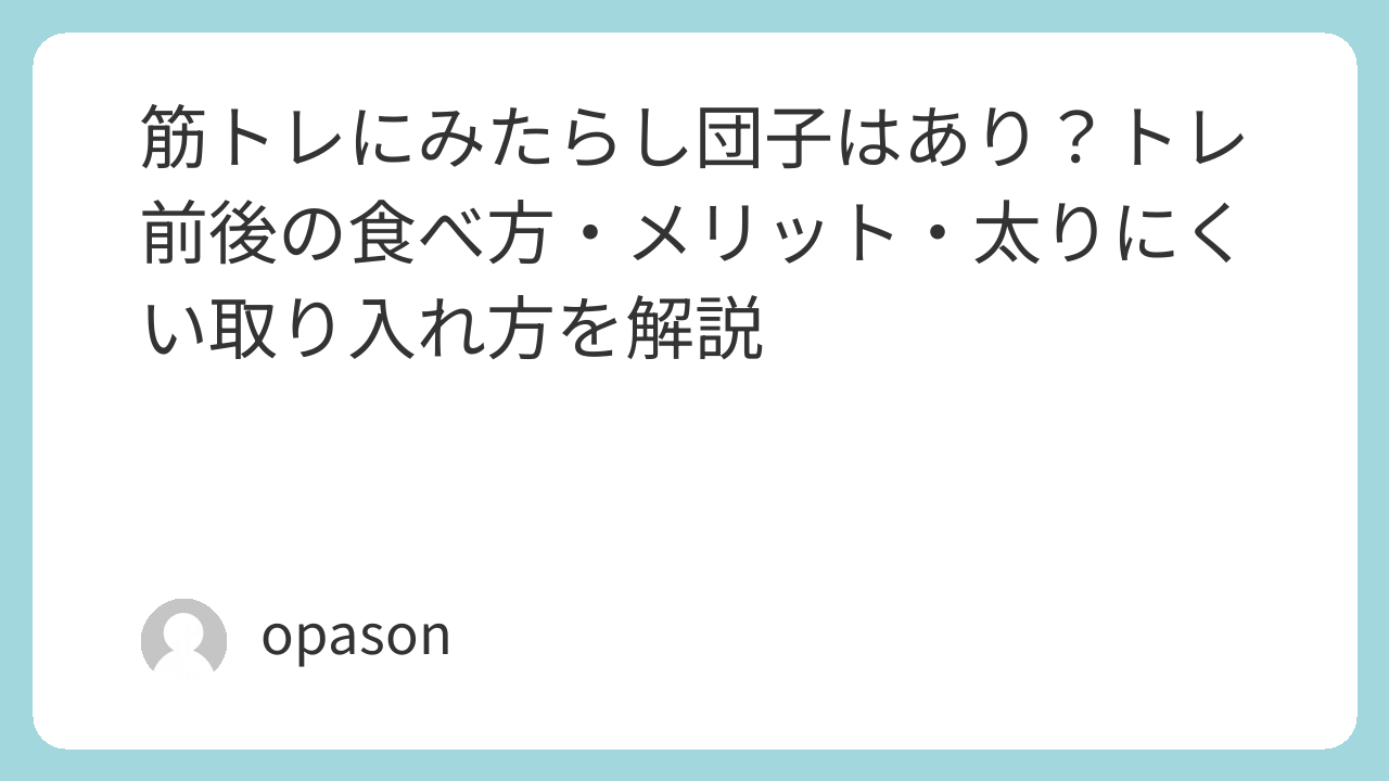 大切なのは、「食べてもいいか、ダメか」で考えすぎないことです。筋トレ中の食事は、目的とタイミングで見る方がうまくいきます。みたらし団子は、筋肉の材料ではなく、動くための燃料として優秀です。そこを理解して使えば、十分に選択肢に入ります。