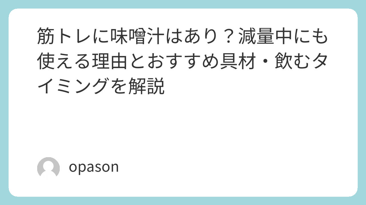 筋トレと味噌汁は、一見するとあまり結びつかないように見えます。ですが、実際に食事管理をしている人ほど、味噌汁をうまく使っている印象があります。