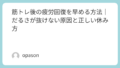 筋トレをした日の午後は、眠いというより、体がふわっと重いことがあります。この「だる重さ」は、ぼんやりしたまま過ごすと意外と長引きます。短い昼寝を入れると、その状態をいったんリセットしやすいのがメリットです。