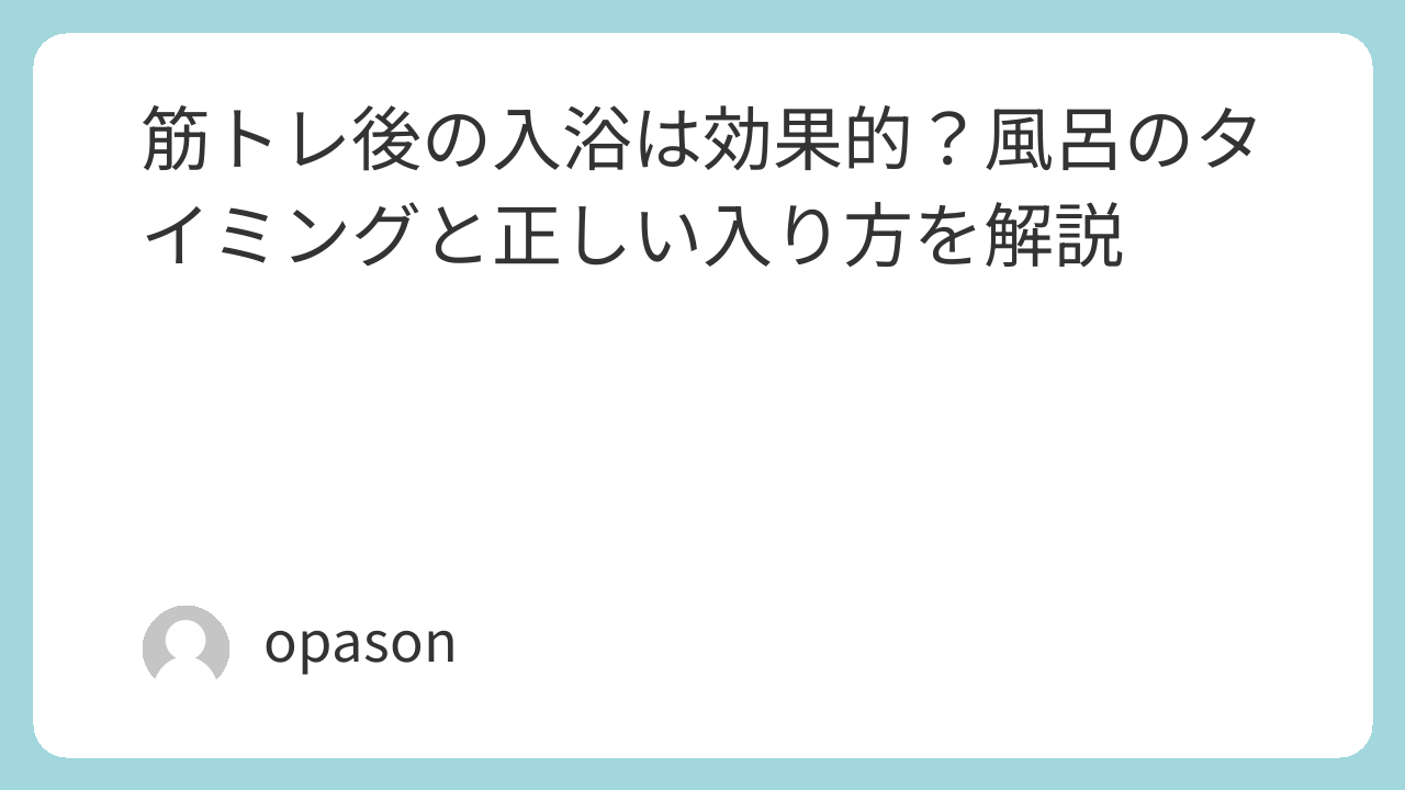 筋トレと入浴の相性は、正解を探すというより、自分に合う落としどころを見つける作業に近いのかもしれません。
