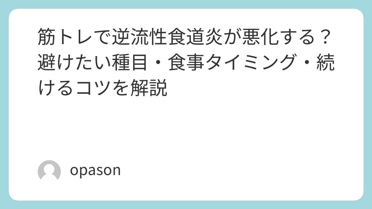 この記事では、逆流性食道炎と筋トレをどう両立するかを、できるだけ実践的に整理していきます。何を避けるべきか、どう工夫すれば続けやすいか、食事やサプリはどう考えるかまで、検索意図にまっすぐ答える内容でまとめました。