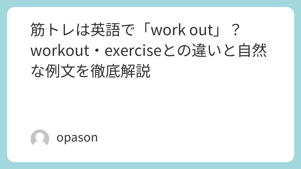 「筋トレって英語で何て言うの?」と聞かれたとき、真っ先に思い浮かぶのが work out という人は多いはずです。実際、会話の中ではかなり自然な表現です。ただ、少し英語に触れたことがある人ほど、「work out と workout は何が違うの?」「exercise でもいいの?」「筋トレっぽさをもっと正確に出したいなら別の言い方がある?」と迷いやすいものです。