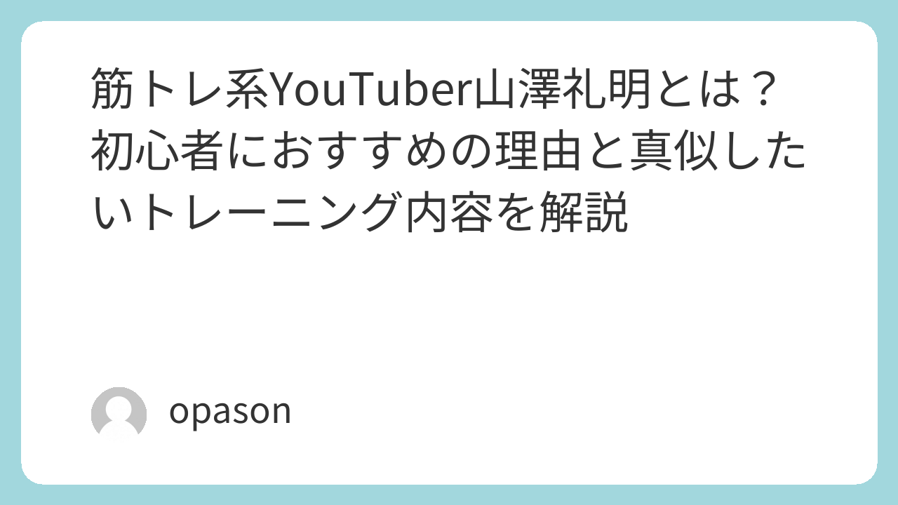 筋トレ系YouTuber山澤礼明とは?初心者におすすめの理由と真似したいトレーニング内容を解説