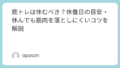 腹筋は「割りたい」という願望が強い部位ですが、同時に挫折しやすい部位でもあります。理由は、見た目の変化が出るまで時間がかかるからです。それでも腹筋系の短時間メニューや全身を動かすトレーニングは、運動習慣の入口として優秀です。