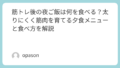 筋トレ後はお腹が空きやすくなります。頑張ったあとにしっかり食べるのは自然なことですし、回復の面でも大切です。ただ、その食事内容によっては翌朝の体重が増えやすくなります。