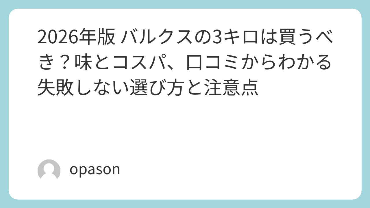 2026年版 バルクスの3キロは買うべき?味とコスパ、口コミからわかる失敗しない選び方と注意点