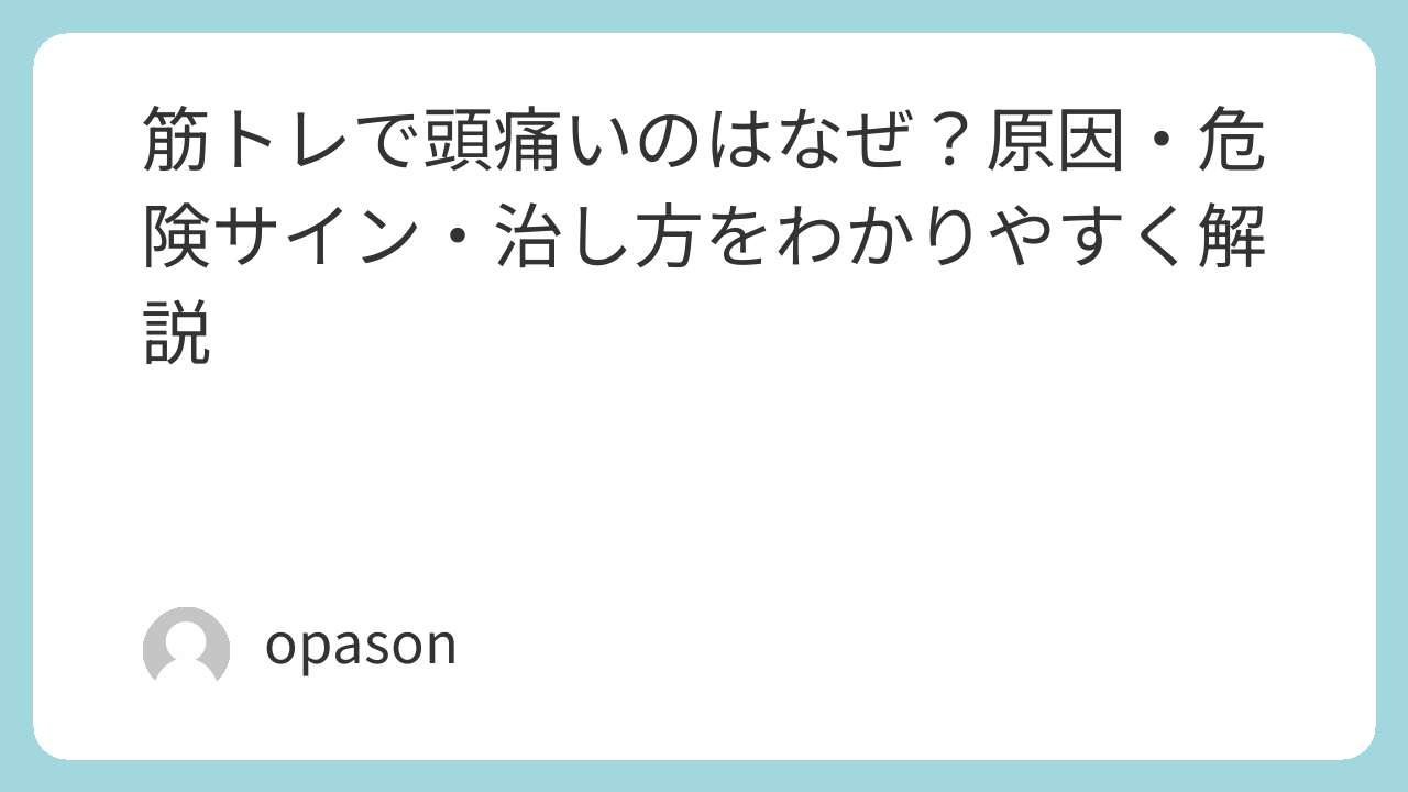 筋トレ後の頭痛の多くは、呼吸や力み、疲労、コンディション不良などと関係していることが多いです。ただし、中には自己判断しないほうがいいケースもあります。