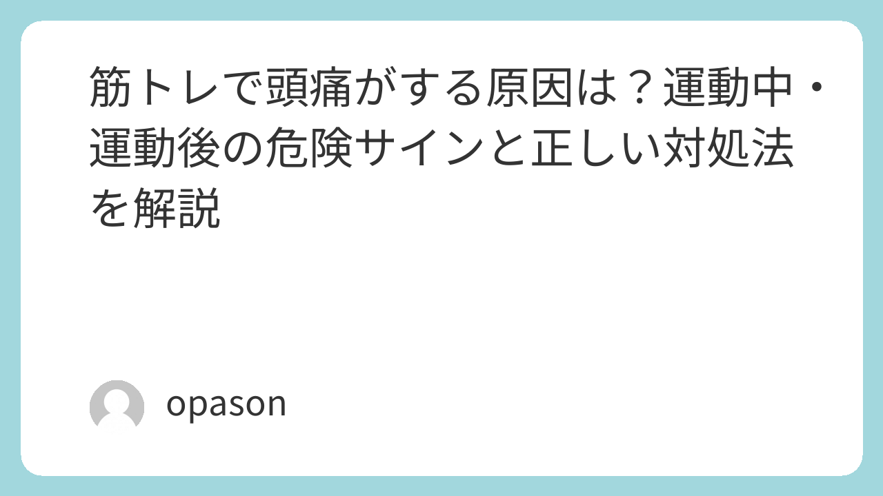 筋トレの頭痛は、やる気がある人ほど地味につらいです。筋肉痛なら頑張った実感に変えられても、頭痛はそうはいきません。メニューをこなした達成感より、「また来たらどうしよう」という不安のほうが残ります。