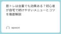 とはいえ、厳密に固定しすぎると苦しくなります。今日は夜にできなかったから寝る前に2種目だけ、という柔らかさを残しておくほうが続きやすいです。