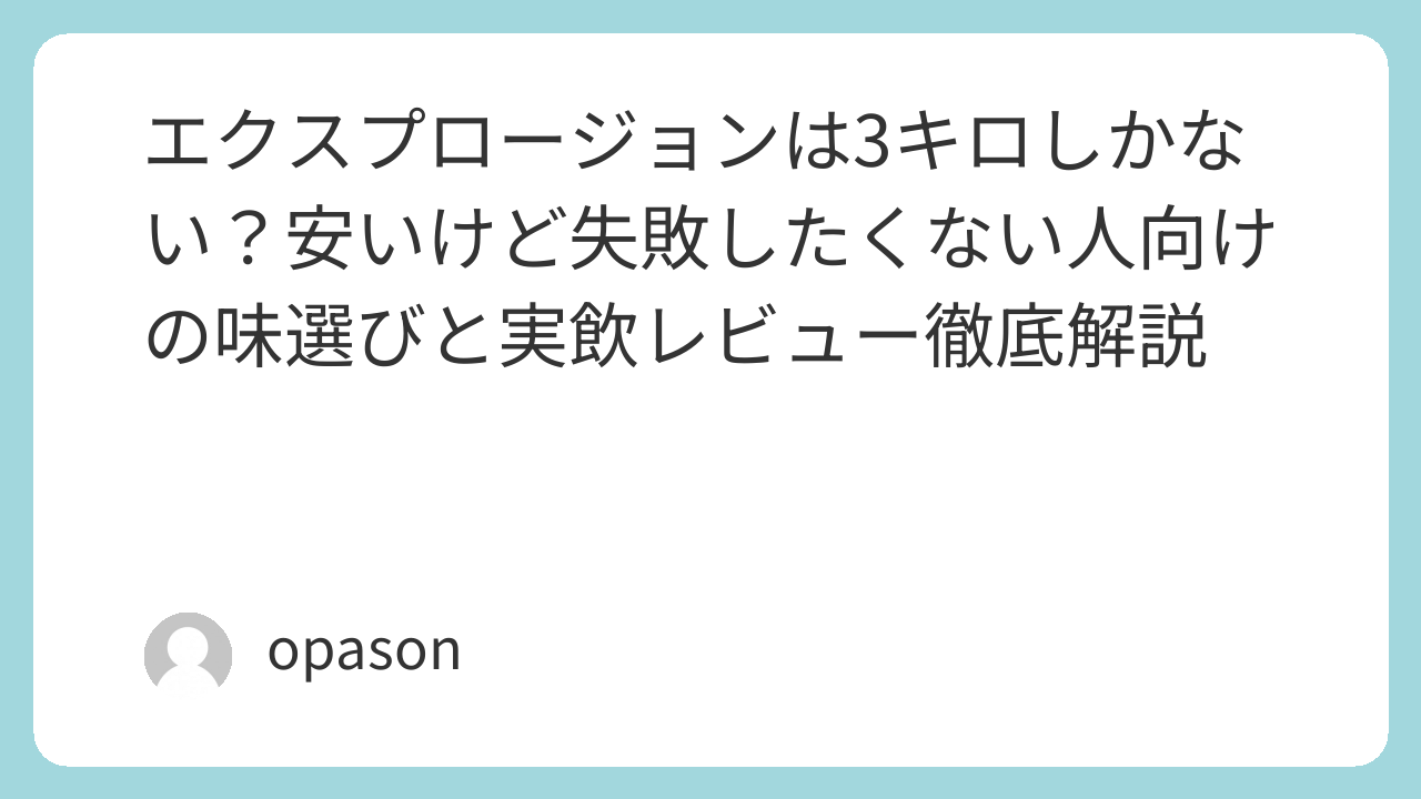 結局のところ、「3キロしかないから不安」という感覚は間違っていません。ただ、その不安は商品そのものの欠点というより、買い方でかなり減らせます。味選びを急がず、少量で相性を確かめ、飲み方まで含めて決めていけば、エクスプロージョンは十分有力な選択肢になります。安さだけで飛びつくのではなく、続けやすさまで見て選ぶこと。それが、3キロで後悔しないいちばん確実な方法です。