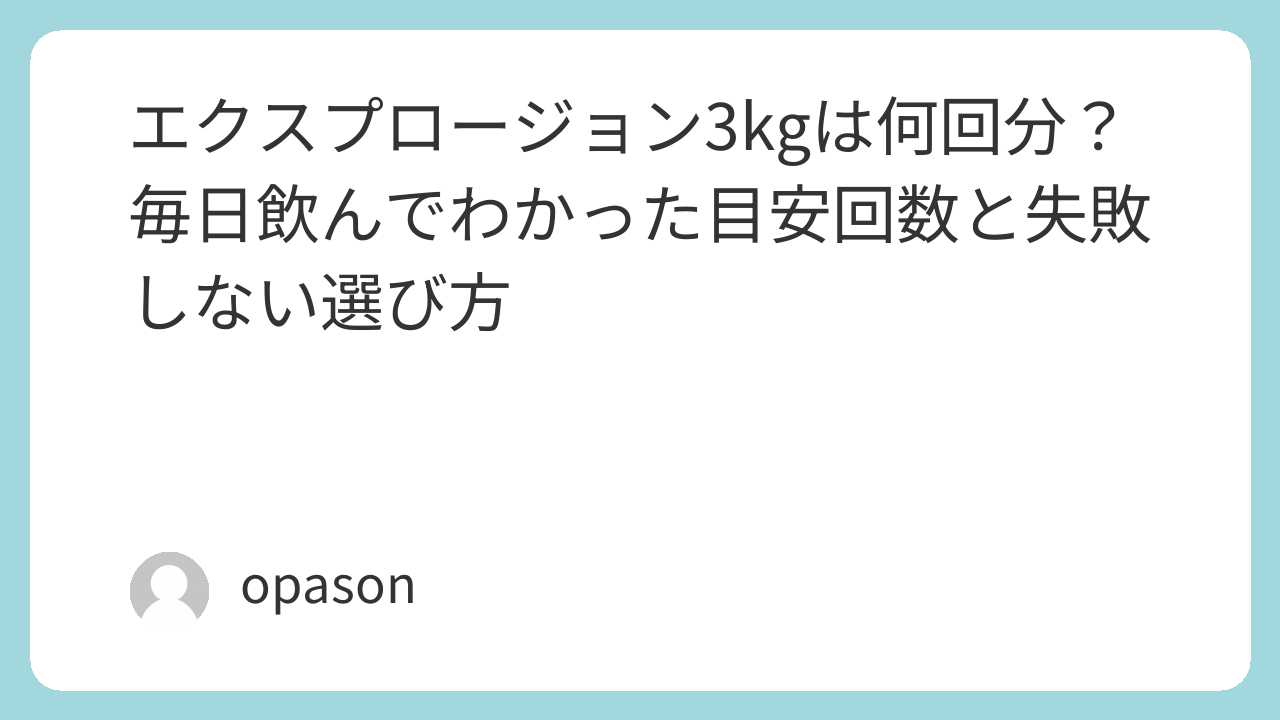 結論からいえば、エクスプロージョン3kgは、1回30g前後で飲むならおおよそ100回分です。つまり、毎日1回飲む人なら約100日、毎日2回飲む人なら約50日ほど持つ計算になります。