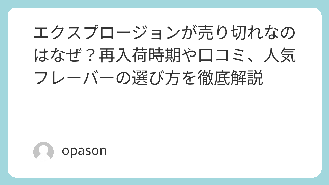 「売り切れ」と聞くと、真っ先に思い浮かぶのは人気集中です。もちろんそれも一因ですが、エクスプロージョンの場合はそれだけで片づけないほうが実態に近いです。フレーバーや容量によっては、原材料の確保や製造の都合、在庫調整の影響を受けやすく、結果として欠品が目立つことがあります。