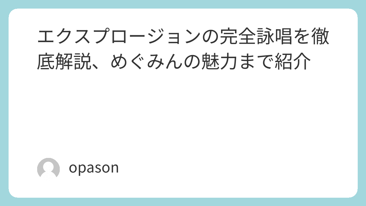 だからこそ、エクスプロージョンの完全詠唱は今も繰り返し検索され続けているのでしょう。読んでも楽しい、聞いても熱い、真似するとさらに忘れられない。その全部をまとめて味わえるからこそ、めぐみんの爆裂魔法は何度でも見返したくなるのだと思います。