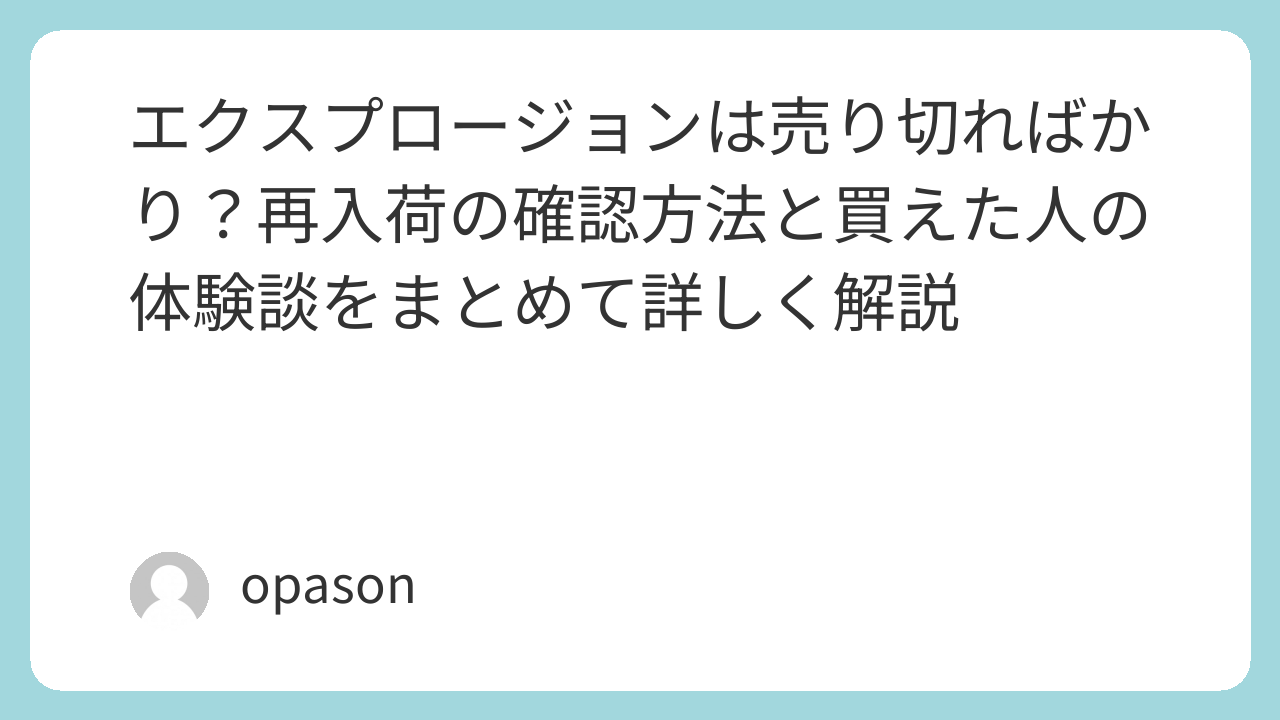 エクスプロージョンをできるだけスムーズに買いたいなら、再入荷の確認ルートを先に持っておくほうがいいでしょう。