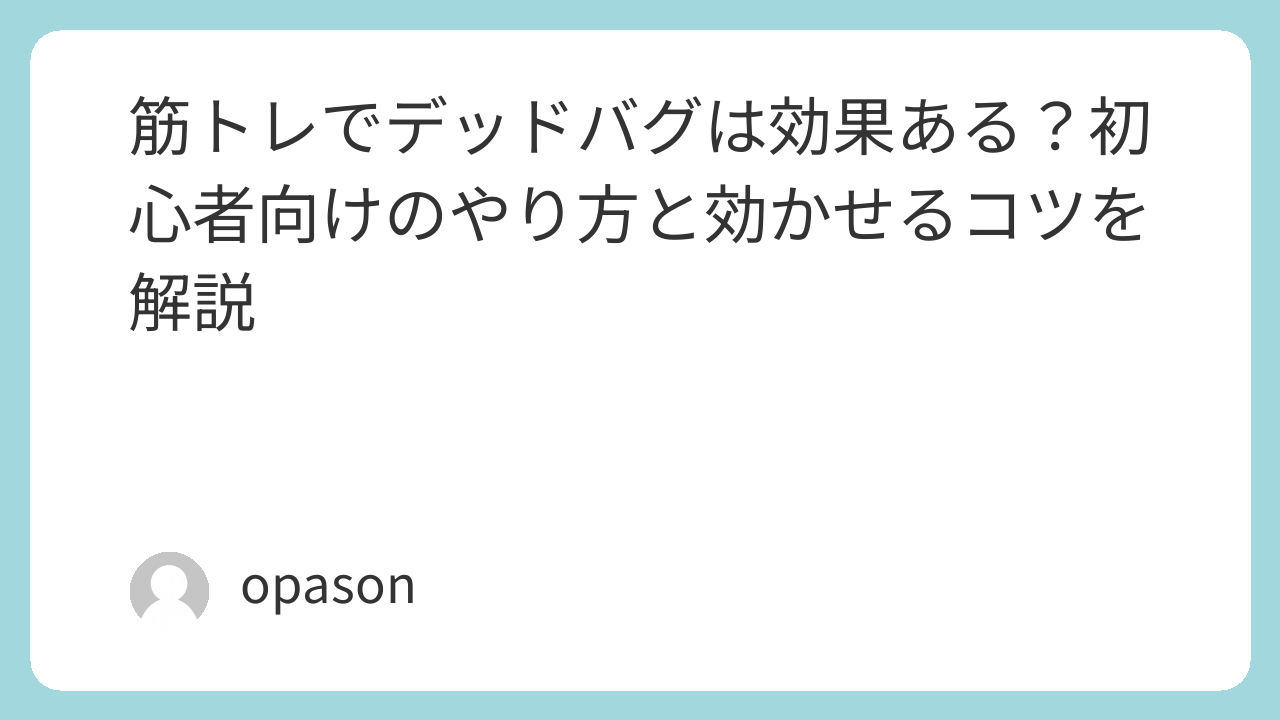 派手さはなくても、続ける価値は大きい。筋トレの基礎を整えたいなら、デッドバグは一度しっかり向き合ってみる価値のある種目です。