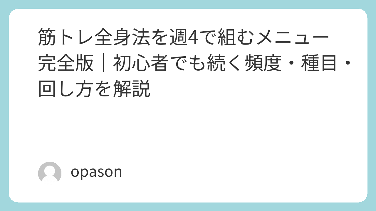 週4全身法は、派手ではありません。ですが、丁寧に組めば、かなり強いメニューです。無理なく続けられて、全身をまんべんなく鍛えられて、忙しい日々にも組み込みやすい。そんな現実的な強さが、このやり方にはあります。